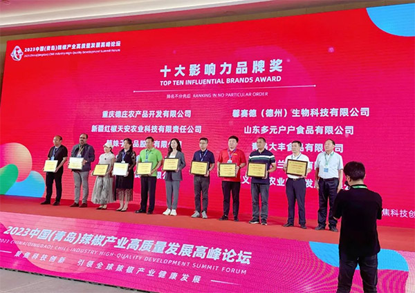 借著辣椒迅猛發(fā)展的勢(shì)頭,山東省辣椒協(xié)會(huì)、青島市辣椒產(chǎn)業(yè)商會(huì)、中國(guó)食品工業(yè)協(xié)會(huì)、山東省食品工業(yè)協(xié)會(huì)共同舉辦2023中國(guó)(青島)國(guó)際辣椒交易博覽會(huì)和2023第二十屆中國(guó)(青島)國(guó)際食品博覽會(huì)。本次會(huì)議以新食尚、新食機(jī)、擴(kuò)內(nèi)需、促循環(huán)為主題,特邀請(qǐng)行業(yè)專家、產(chǎn)業(yè)代表、國(guó)內(nèi)外辣椒產(chǎn)業(yè)鏈龍頭企業(yè)代表齊聚一堂,設(shè)置包括前沿分享、主題沙龍、頒獎(jiǎng)典禮等多個(gè)環(huán)節(jié),全方位、多視角共話辣椒產(chǎn)業(yè)相關(guān)政策。其中在頒獎(jiǎng)環(huán)節(jié),辣妹子憑借出眾的品牌影響力和產(chǎn)品研發(fā)創(chuàng)新力,一舉斬獲“十大受歡迎影響力品牌獎(jiǎng)”,收獲了來(lái)自行業(yè)的高度認(rèn)可。