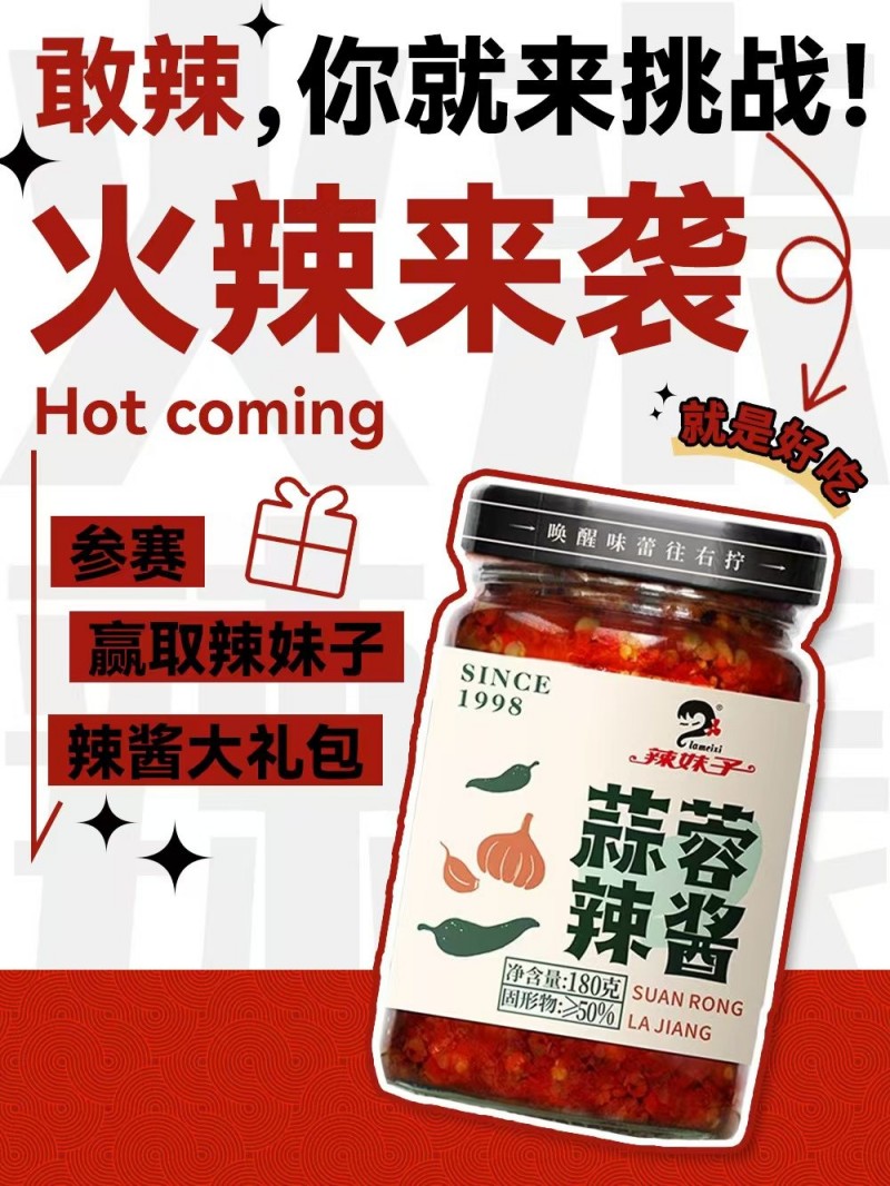 辣,是湖湘文化的重要符號,而作為深耕湘味復(fù)合調(diào)味醬的湖南老字號品牌,辣妹子此次快閃以“萬物可辣”這一主題,不僅生動地向大眾展示了其佐餐醬、調(diào)味醬系列產(chǎn)品的廣泛適用性和無限創(chuàng)意,也讓這經(jīng)典的湖湘味道觸達(dá)更多年輕消費(fèi)群體,喚起大眾對地道湘味的深刻記憶與無限向往。