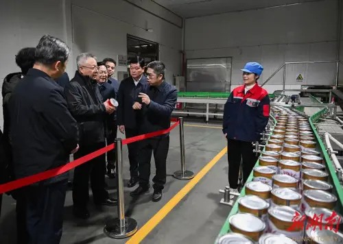 隨后,沈曉明書記察看了辣妹子辣椒醬、水果罐頭等食品自動化生產線,了解辣椒原料供應和深加工、市場拓展等情況,同時叮囑辣妹子嚴格落實食品安全主體責任,不斷提高自動化生產水平,進一步推動擴產擴銷,充分發(fā)揮辣妹子龍頭企業(yè)作用,帶動更多農業(yè)生產企業(yè)共享銷售渠道,帶動更多湖南農特產品走向全國。