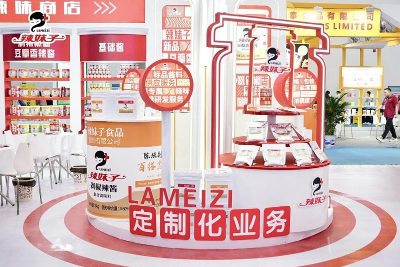 值得一提的是,3月28日-30日,辣妹子以“辣味解決方案服務商”的主題參加了于武漢進行的第十三屆良之隆食材展會,本次展會盛況非凡,匯集了美食行業(yè)大咖及餐飲終端采購等,辣妹子定制化推出的4款基礎辣醬工業(yè)桶系列,鎖鮮椒系列,以及13種特色烹飪醬悉數(shù)展陳亮相,引得游覽者紛紛駐足品嘗。